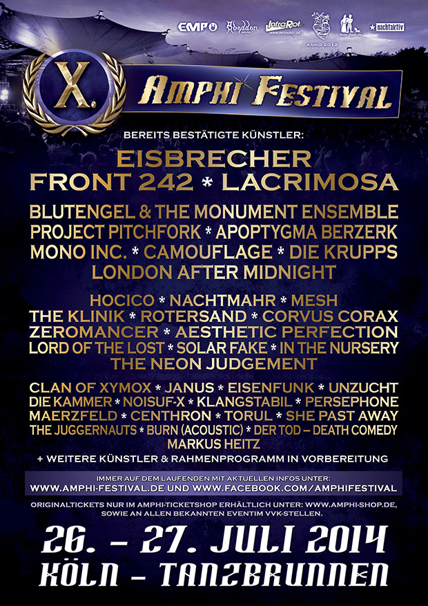 Tickets zum Amphi Festival 2014 erhaltet ihr sowohl im offiziellen Ticketshop als auch bei Eventim.de und allen bekannten VVK-Stellen.