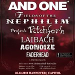 Das übrige Lineup ist in allen Städten identisch: Project Pitchfork, Laibach, Agonoize und Faderhead werden die Abende alles andere als „ruhig und beschaulich“ gestalten.