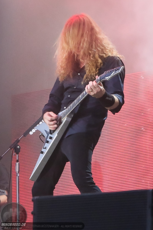 Dave Mustaine stimmte eine harte Gangart mit seiner Kombo Megadeth an. Wir alle kennen natürlich den Streit und das Vertragen… mit seiner ehemaligen Band Metallica. Von den letzten Konzerten, die ich von der Band sah, hatte ich in Erinnerung, dass Dave singt als wären seine Lippen zusammengetackert. Egal – rauf auf den Hauptplatz und nach vorne drängeln. Der Gesang war überraschend melodisch und da stimmte die Band plötzlich meinen Lieblingskracher an: Dave meinte „und so noch ein Lied über das Wetter“. Naja, es war Tornado of Souls. Ein Klassiker der Metalgeschichte, der mit einer gewaltigen Staubwolke über den Platz fegte. Zwischendurch wurde das Konzert durch Filmclips aus Waynes World 2 und Silver Linings aufgepeppt. Die Band wurde in den entsprechenden Szenen erwähnt und als Kenner der Filme konnte ich mir ein breites Grinsen nicht verkneifen.