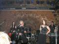 Zweifelsfrei am Auftreten des Sängers und dem T-Shirt des Keyboarders erkennbar, handelt es sich um ein von Chris Pohl betreutes Musikprojekt. Doch das sollte den Spaß nicht schmälern, den die meisten hatten. Die einfachen Texte ließen sich leicht mitsingen, die tiefenbetonte Elektronik pumpte und schon war Stimmung vorhanden, die bis zum Ende des Konzertes nicht abriss, sondern sich im Gegenteil noch steigerte. In weißem Hemd und blutverschmiert mutete der Sänger schon etwas seltsam an, aber die Sängerin und der Rest der Band sorgten durch halbwegs normale Optik für den Ausgleich. So feierten Trümmerwelten mit ihren Gästen eine knappe Stunde, in der auch eine Zugabe fällig war.