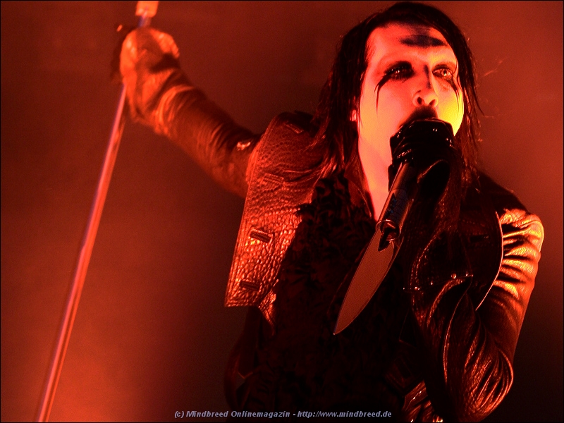 Mr. Manson stolzierte aus eben jenem zu den Takten von „If I was your vampire“ und leitete damit den Höhepunkt des Sonntags ein. Wurde im Vorfeld eine völlig neue Bühnenshow propagandiert, offenbarte sich das Programm als gute Mischung aus Stücken des neuen Albums „Eat me, drink me“, welches mit alten Klassikern durchsetzt war. So gab es neben „Tainted Love“, „Sweet Dreams“, „mObscene“ und „I don´t like the drugs“ auch den „Fightsong“, bei welchem die Massen frenetisch „Fight! Fight!“ skandierten.