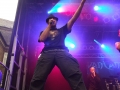 Doch den Tapferen gehört die Welt, nach gut 40 Minuten klärte sich das Wetter wieder auf und die Metallspürhunde enterten zum zweiten Mal an diesem Abend die Bühne. Nicht ohne das Durchhaltevermögen der Besucher zu loben, setzten die Electrometaller ihr Programm zunächst mit dem Song „Was hat dich bloss so ruiniert“ fort. Ein Titel der durchaus etwas zynisches hat, wenn die klatschnassen Haare und Anziehsachen an einem kleben, als wäre man im wahrsten Sinne des Wortes gerade aus der Gosse gezogen worden.
