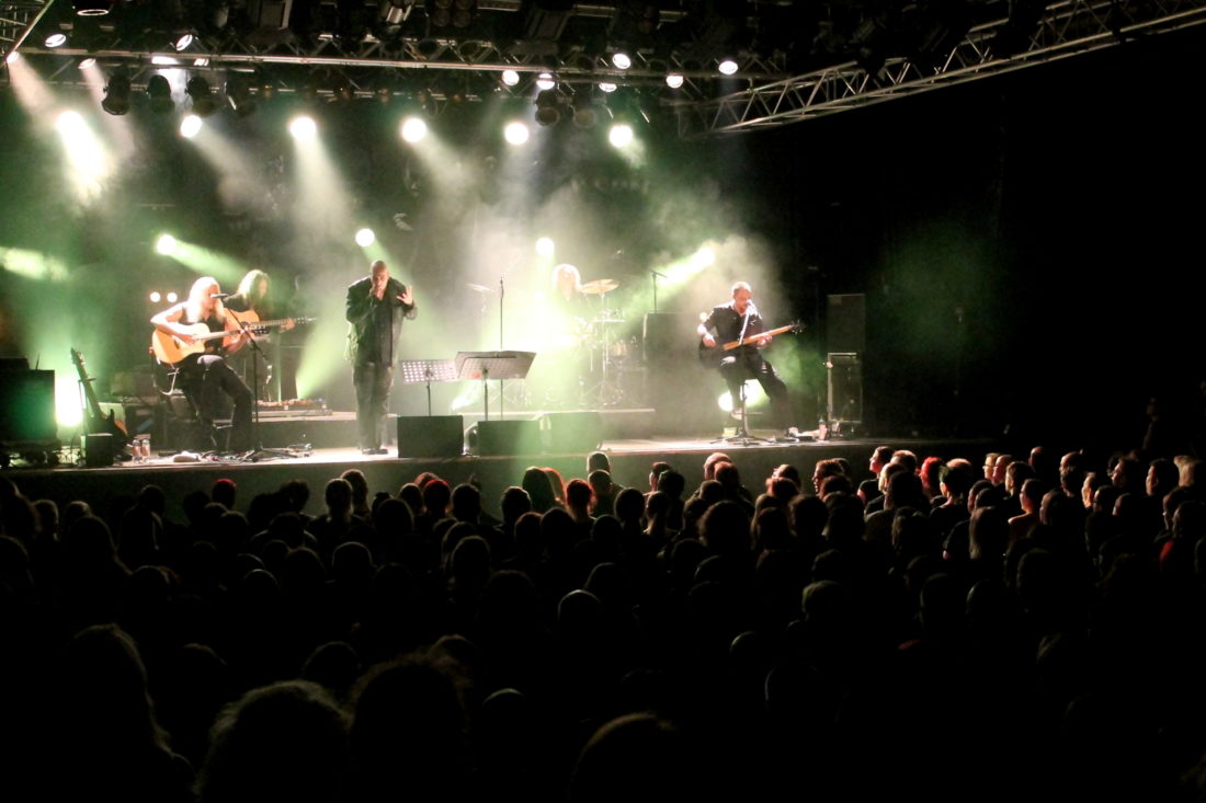 So begann der erste Abend etwas gediegener, halb akustisch, halb elektronisch verstärkt, wurden einige Perlen der ASP Historie wieder herausgeholt und blank poliert. Der Saal war teilbestuhlt, merkwürdigerweise waren die Sitzplätze auch tatsächlich begehrt. Mit dem Song „De profundis“ wurde ein frühes Werk der Band gestellt, den wohl einige Besucher über die Jahre verdrängt hatten. Man bemerkte aber deutlich, dass das Auditorium die älteren Songs wieder neu entdeckte. „Sara“ konnte durch seine tolle Melodie überzeugen und mittlerweile saßen nur noch einige vereinzelte Fans bei dieser Darbietung auf den Stühlen. Die Hymne aller Dunkelromantiker „ Der schwarze Schmetterling“ wurde genauso gespielt wie „Wechselbalg“. Eine dunkelbunte und kurzweilige Reise durch sämtliche Studio-Alben dieser genialen Band. Abgerundet wurde dieses Event durch die Ansagen von ASP und kürzeren Gedichtpassagen aus dem „Dunklen Turm“. Nach dem legendären „Varieté Obscur“ verließen die Musiker die Bühne. Alle Musiker? Nein, Alexander Spreng blieb mit seinem Gitarristen auf der Bühne und spielte einige Songs nur mit der Unterstützung der Akustik Gitarre. Sein Tribut an die Band „Danzig“ sollte vielen Besucher noch lange im Gedächtnis bleiben. Die Stimmung wurde immer familiärer und ausgelassener, als dann schließlich wieder die gesamte Band die Bühne enterte und mit „Finger weg“ ihre Kommerz-Kritik deutlich darbot. „How far would you go“ kam bei dem Publikum überraschend gut an, obwohl man diesen Song bereits einige Jahre nicht mehr live gehört hatte. Das Highlight des Balladen Blocks war ohne Zweifel das epische „Demon love“. Ein wirklich großartiger Song, der durch seinen tiefgründigen Text und der sanften Melodie jeden Szenegänger in Ekstase versetzt. „Sing child“ ist wohl einer der bekanntesten Hits aus dem Hause ASP. Eben diesen Song kann man sich nicht von den Tanzflächen der Republik wegdenken. In der neuen, sanfteren Version sicher anders, aber immer noch tanzbar und magisch, wie man ihn kennt und liebt. „Löcher in der Menge“ ist neueren Datums, jedoch nicht minder beliebt und so wurde die Band verdientermaßen abgefeiert, ehe mit DEM Gothic Song schlechthin das Ende eingeläutet wurde. Nach „Ich will brennen“ war der erste Abend dieser Tour Geschichte. Insgesamt 2,5 Stunden stand die Band auf der Bühne und spielte eine interessante Mischung aus alten Waisen und neuen Dichtungen, sehr gelungen.
