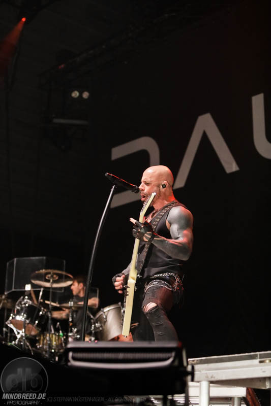 Nach einer sehr kurzen Umbaupause kamen dann Daughtery auf die Bühne. Es schien als ob der Frontmann Chris Daughtry vor allem die Frauen nach vorne lockte. Der durchtrainierte Kerl sieht aber nicht nur verdammt gut aus, er kann auch wirklich gut singen.