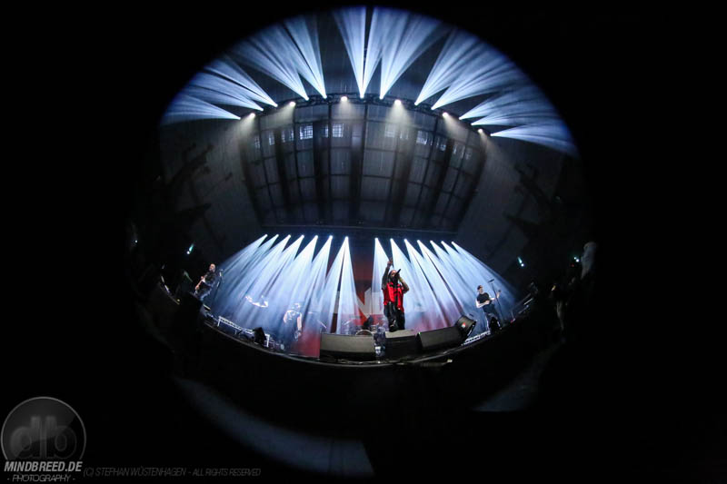 Die Halle war nun prall gefüllt und gefühlt sind einige von den Rängen runter ins Publikum gekommen. Trotz des harten Aussehens war die Musik doch überraschend weich und poppig. Bereits die ersten Songs hauten mich um. Nach Divided gab es The Bottom bei dem mich vor allem der Refrain mitriss. Auch das Publikum in der nun deutlich gefüllten Halle sang lauthals mit. Danach folgten The Day I Die, Separate Ways (Worlds Apart) und It´s Not Over. Danach es dann soft und gut. Denn bei Home packte Chris dann einfach mal die Akustikgitarre aus. Hier gab es dann große Gesten, Handylampen im Publikum und auch ein paar Tränen, weil die Stimmung so großartig war. Dann wurde es wieder etwas härter. Auch hier war der Sound vor allem in den vorderen Reihen recht laut. In der Mitte der Halle, wo ich das meiste des Konzerts genoß, passte jedoch Stimmung und Sound perfekt.
