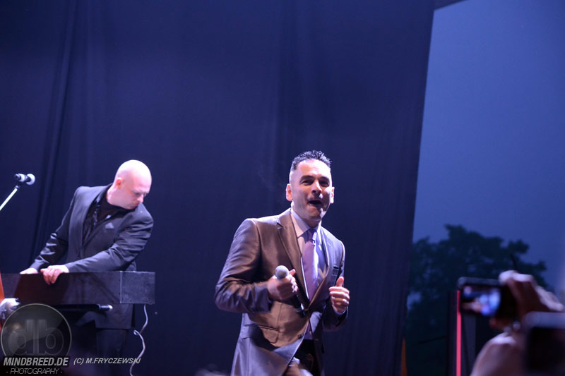 Es gibt für „Apoptygma Berzerk“ kein besseres Lied, um ein grandioses Best of-Konzert im 22. Jahr ihres Bestehens einzuleiten, als „Love never dies“. Kaum stürmen Stephan Groth, Brandon Smith, Thomas Jakobsen und Keyboard-und Background-Neuzugang Leandra die Bühne, reisst es das Publikum von den Sitzen, und zum ersten Mal an diesem Tag feiert das gesamte Amphitheater.