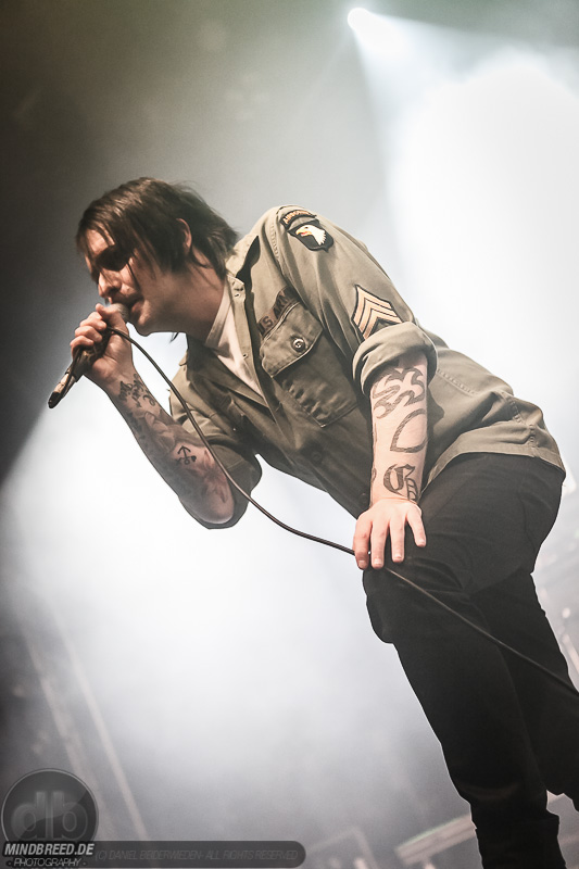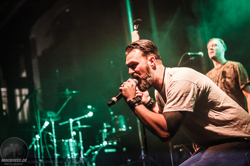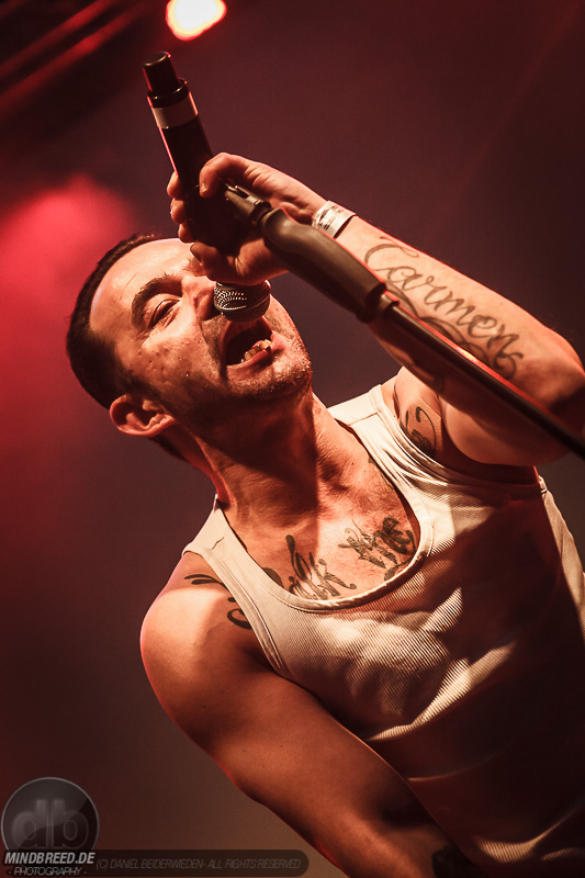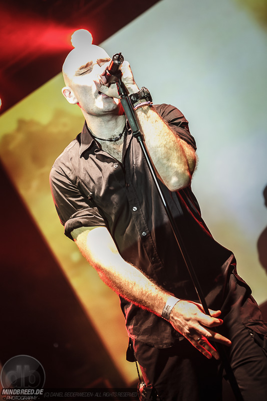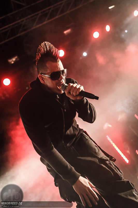 Also ging die Show los. Von Null auf Hundert in Null-komma-nix und die beiden halten ihr Level! Unglaublich wieviel Duracel-Häschen schon daran glauben mussten um dem Leadsänger dermaßen viel Energie zu geben. Publikum und Band feuerten sich gegenseitig an. Das bisher größte Mosh-Pit suchte sich seinen Weg ab der 7./8. Reihe. Erk sucht gezielt den Kontakt zu seinen Fans im Graben und ließ sich dabei soviel Zeit wie kein anderer an dem Tag.