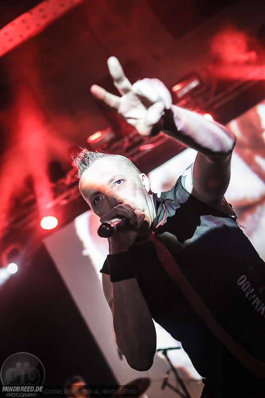 APOPTYGMA BERZERKIch bewege mich derweil zum X-ten Mal wieder in die andere Richtung zu Apoptygma Berzerk. Danke Norwegen! Es wird direkt beim ersten Lied lautstark mitgesungen, sowieso bieten Apoptygma Berzerk da bestes Potential zu. Jubel und lautstarkes Geklatsche… Woooohoooohoooo-Choräle und eine richtig gute Party-Stimmung, läuft! Die Jungs sind nicht nur richtig gut untereinander eingespielt, die blasen auch dem Publikum ordentlich Pfeffer in den Arsch! Es wird bis weit in die Mitte der großen Halle getanzt und als dann sogar noch die Töne zu „Major Tom“ erklangen erreichte das Ganze seinen Höhepunkt.