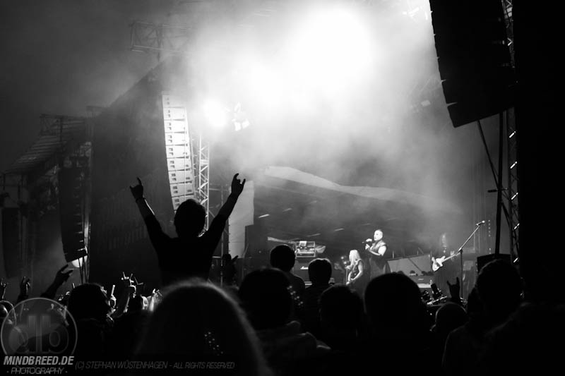 Danach folgten ASP – Die Band ist nicht jedermanns Geschmack, doch ich mag sowohl den düsteren Gesang als auch die Bühnenshow, die von Jahr zu Jahr aufwändiger wird. Bereits im Vorfeld gab es einiges an Pyrowarnungen von den Securities und der halbe Graben wurde wegen der Flammenwerfer gesperrt. Dazu noch zwei Schaumkanonen und der Platz wurde für die Fotografen noch knapper.
