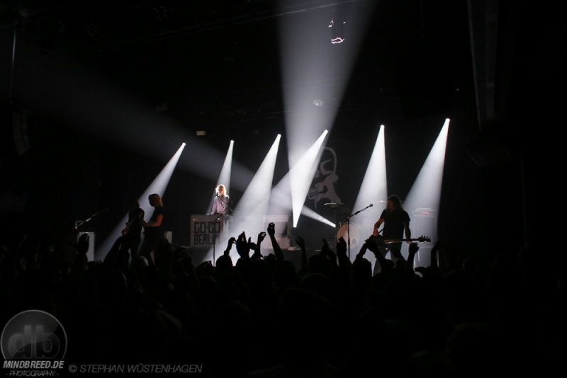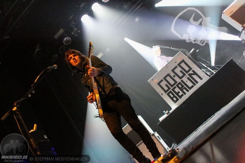 Gegen 22:00 wurde das Publikum langsam unruhig und verlangte nach ihren Lieblingen. Und Go Go Berlin ließen nicht lange auf sich warten und nach dem Intro (welches auch das Intro auf dem letzten Album Electric Lives ist) ging es mit „Kill Me First“ los. Bereits hier brodelte die Stimmung und die Zuschauer hingen geradezu an den Lippen des Frontmanns Christian Vium. Doch auch der Bassist Emil Rothmann schien seinen Fanclub mitgebracht zu haben, zumindest kamen mehrfach während des Konzerts laute Rufe seines Namens aus einer bestimmten Ecke. Nach dem Opener folgten „Darkness“ und „Electric Lives“ welche die Stimmung noch weiter aufheizten. Es war das erste Konzert der Band im Magasinet in Odense, doch das Publikum schien die Band gut zu kennen. Die Band erzählte auch die nette Anekdote, dass das erste Go Go Berlin überhaupt in Odense stattfand als noch niemand den Jungs eine solche Karriere zutraute. Ein weiterer Höhepunkt des Konzertes war „Kids“. Dieses relativ neue und verrückte Lied der Band, brachte das komplette Publikum zum Tanzen. Natürlich kein Go Go Berlin Konzert ohne eine Mammutversion von „Raise Your Head“. Hier ließ sich die Band einfach mal ordentlich feiern und man merkte, wie sie das genossen. Als 20 Minuten Outro gab es dann „All Mine“ und „Shoot The Night“. Auch hier wurden die Songs unendlich mit Improvisationen gestreckt und man merkte den Geist des Rock ’N’ Roll. Die Band jammte einfach mal vor sich hin und das Publikum folgte jeder Aufforderung des Frontmanns und auch wir genossen die großartige Stimmung.