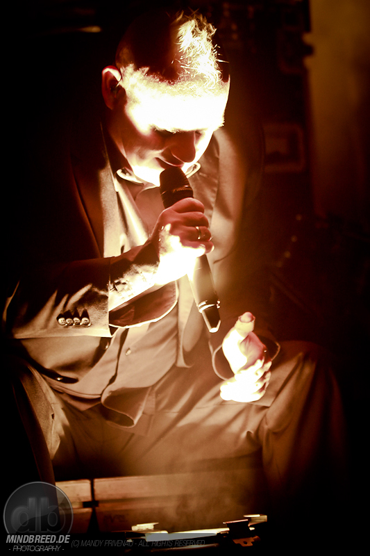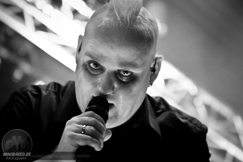 Doch zuerst kommen Stahlmann und heizen dem Publikum gehörig ein. Bei Songs wie „Willkommen“ und „Marschieren“ springt der Funke sofort über. Die vier Göttinger Jungs sind in der Neuen Deutschen Härte zu Hause und klingen zeitweise wie Eisbrecher und Unheilig. Auch sie tragen dunkle Anzüge und ihre Gesichter sind passend zum Namen silbern Geschminkt. Der Auforderung zum Mitklatschen kommen alle gerne nach und der Saal beginnt zu kochen. Stücke wie „Stahlmann“, „Kaltes Herz“ und „Hass mich… lieb mich“ folgen.