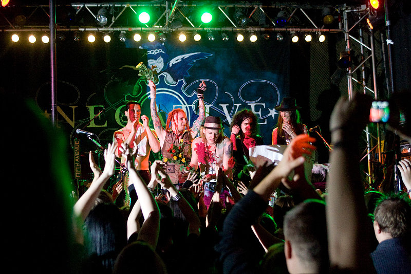 „Planet Of The Sun“ leitete den Zugabeblock ein und man konnte ohne Mühe erkennen, dass Band und Publikum reichlich Spaß hatten. Die mehreren hundert Zuschauer machten einen Wahnsinns Lärm, tanzten, sangen, klatschten und feierten ihre Band ausgiebig. Ein wirklich gelungener Tourauftakt für die Jungs, die nach ihrem letzten Song „Sinners Night/Misty Morning“ gar nicht mehr von der Bühne wollten. Sie waren sichtlich gerührt und 100%ig begeistert. Sänger Jonne sagte gewiss 10 mal ein „I don’t wanna leave this place“ (positiv) fassungslos in sein Mikrofon. Doch auch ein so schöner Abend muss einmal enden. Nach über 100 Minuten Negative live verabschiedeten sich die fünf Musiker lange und mit Rosen für ihre Fans. Glücklich und zufrieden schlenderte die Meute anschließend zum Merchandise Stand, um das Gekaufte später von der Band signieren zu lassen.