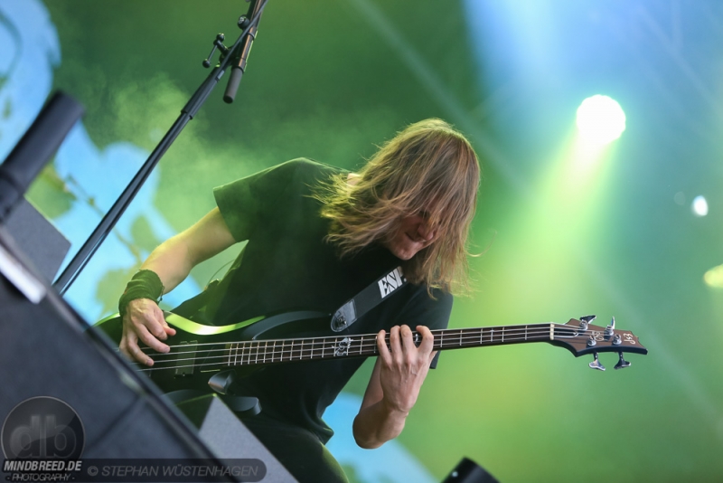 Nun hieß es Endspurt. Der dritte Tag des Rockharz begann für uns gegen 19 Uhr als bereits Ensiferum mitten in ihrem Konzert waren. Die Finnen knüppelten sich so richtig die Seele aus dem Leib. Die meisten Texte konnte ich nur schwer verstehen, da die Metalstimme des Frontmanns sehr undeutlich war – doch „In My Sword I Trust“ verstand ich gut und so sang ich gemeinsam mit den anderen Festivalgästen was das Zeug hielt. Beim letzten Song „Iron“ stieg dann eine gewaltige Staubwolke vor der Bühne auf, denn der Moshpit tobte, als ob es kein Morgen mehr gäbe. Nun irgendwo hatten sie ja recht, es war der letzte Festivaltag – warum also noch Energie aufsparen.