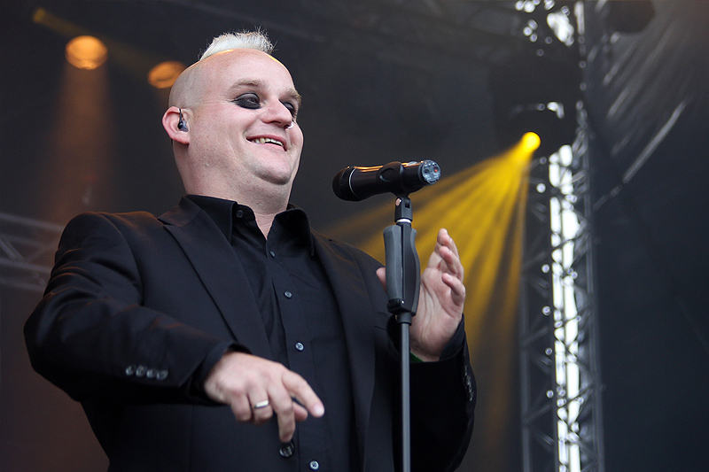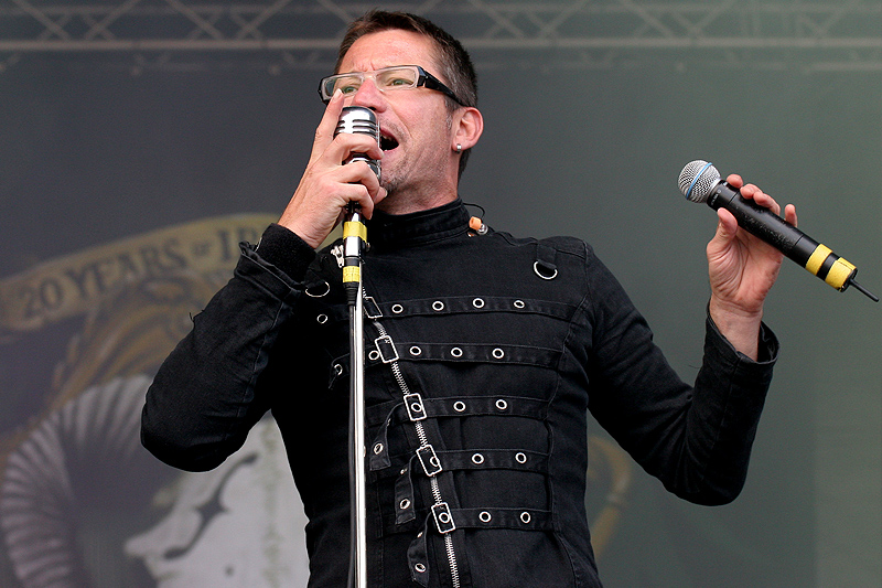 Für viele schien das Festival erst mit Mono Inc. zu beginnen, denn während das Publikum beim Opener noch unter den Begriff „überschaubar“ zu fassen war, tümmelte sich jetzt bereits eine große Zuschauerschar vor der Bühne. Nass und etwas verfroren – das sind beste Voraussetzungen, um sich von Mono Inc. kräftig einheizen zu lassen.