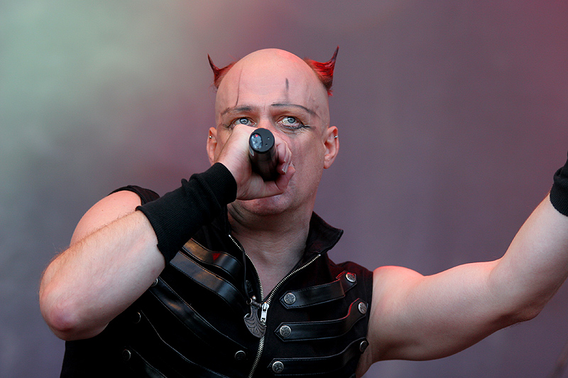 Die zunehmenden „Reiter! Reiter!“ Rufe kündigten es an: Der Auftritt der bizarren Metaller rückte näher. Mit „Wir sind das Licht“ brach eine Flut harter Riffs und knallender Bässe über das Infield her, die auch in der kommenden Stunde keinen zur Ruhe kommen lassen sollte.