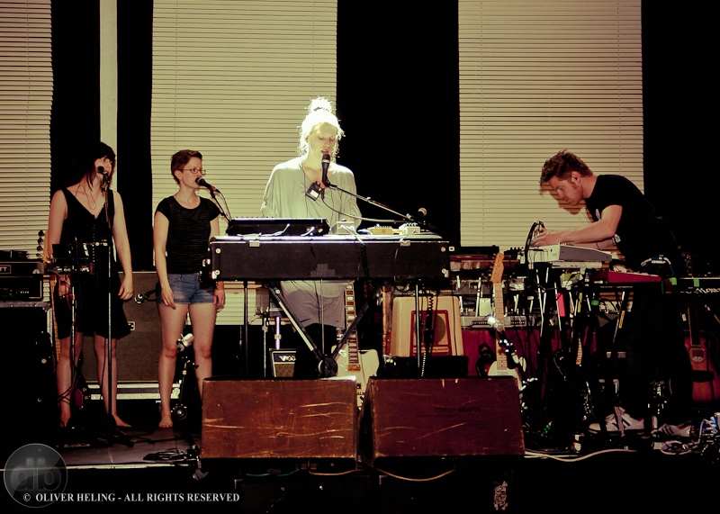 Gegen 20:30 Uhr erst kommt das Publikum so nach und nach. Ich bin mir nicht sicher ob der Grund lediglich Thomas Dybdahl ist, denn auf dem offiziellen Plakat am Eingang ist Susanne Sundfør in keiner Weise erwähnt! Mehr als genügend Platz bleibt vor der Bühne, die wirklich vollgepackt ist mit Instrumenten, den netten Charme eines Proberaumes verbreitend. Susanne betritt, gefolgt von Drummer, Keyborder und zwei Backgroundsängerinnen gegen 20:40 Uhr die Bühne. Mehr Platz auf dieser wäre machbar gewesen.