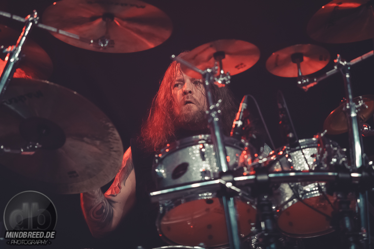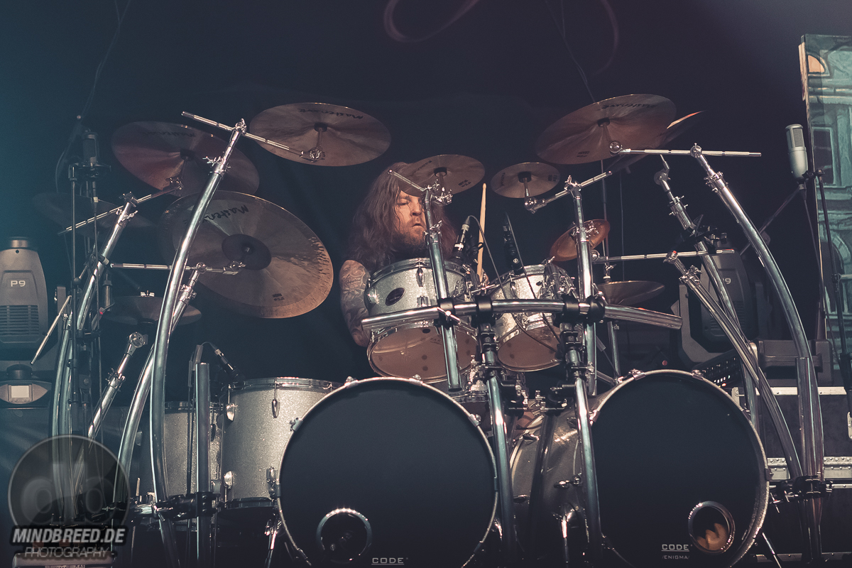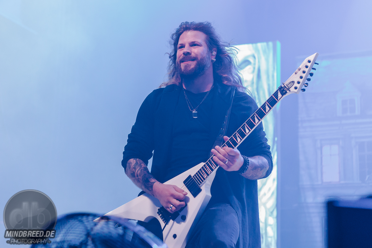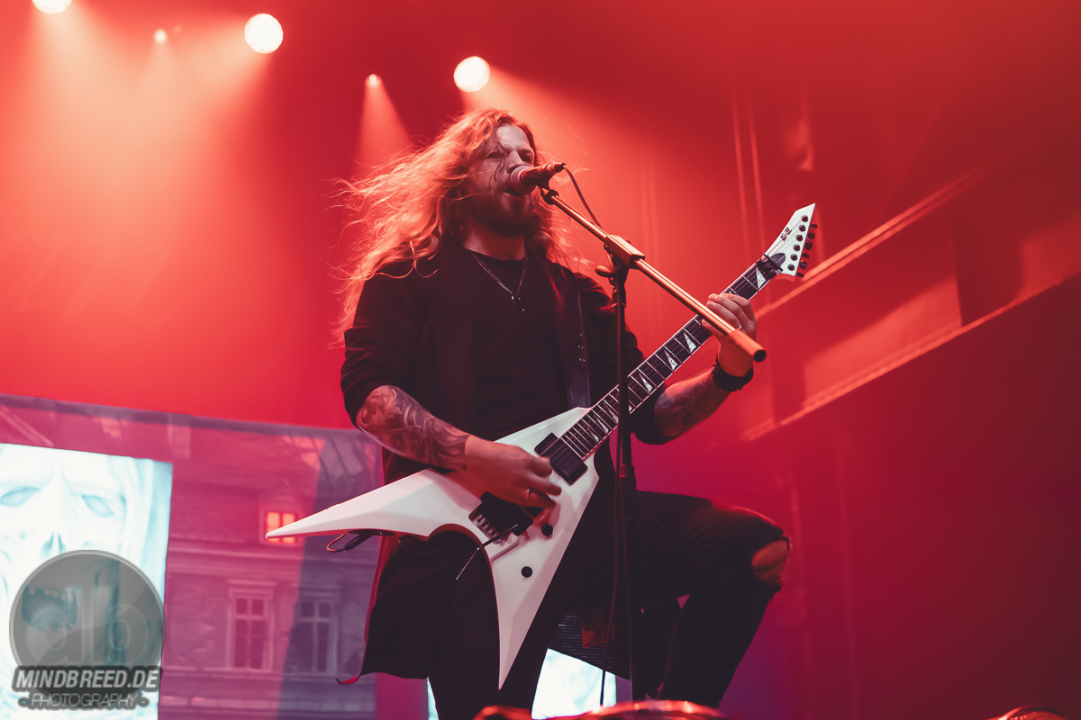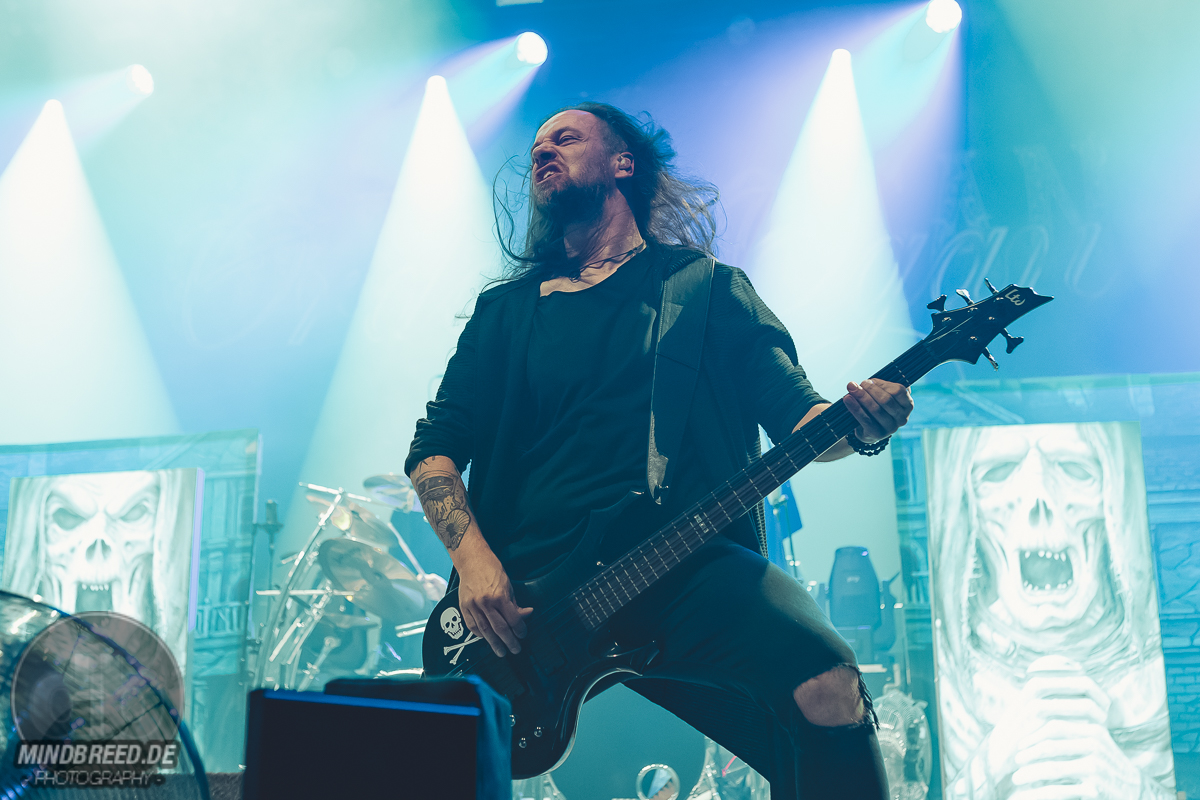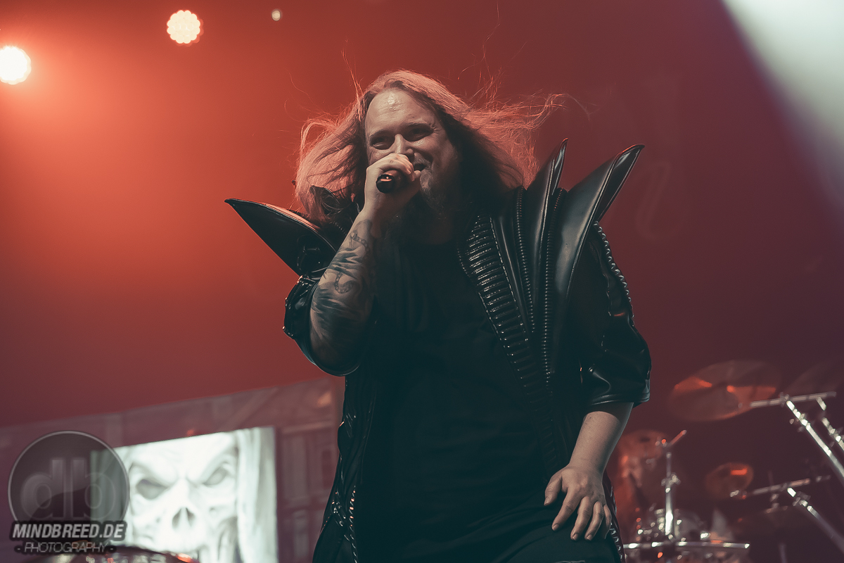 Nach einer kurzen Umbaupause ging es um 20:00 Uhr weiter und die Power-Metaller Orden Ogan legten zu „Heart of the Android“ los. „Guten Abend, Köln“ grüßte Seeb Levermann das Publikum, das ihm jubelnd antwortet. Allerdings nicht in Seebs Sinne. Ein bisschen Ordnung musste sein und die korrekte Antwort lautete natürlich „Guten Abend, Orden Ogan“. Nach einer kurzen Übungsrunde klappte das auch hervorragend, so dass es im Set weitergehen konnte. U.a. mit „F.E.V.E.R.“ und „Forlorn and Forsaken“. Die bereits von der vorherigen Band wach gemachten Fans waren auch bei Orden Ogan mit voller Stimmgewalt dabei. Teilweise sogar die Empore. Die Mannen um Seeb mussten kaum etwas machen, um die Stimmung hoch zu halten, legten sich aber dennoch ordentlich ins Zeug. Die jahrzehntelange Bühnenerfahrung hatte sie schließlich gelehrt, wie man die Fans bei Laune hält. Orden Ogan dürften aber auch gerade auf einer Glückseligkeitswelle schwimmen, schließlich kommt im Sommer ihr neuestes Werk „The Order of Fear“ auf den Markt. Den entsprechenden Titelsong des Albums gab es auf dieser Tour und demnach auch in Köln zu hören. Mit geforderter Publikumsunterstützung. Aber nicht, ohne dies vorher zu üben. Die Aufgabe war denkbar einfach. Es war einfach nur zu gegebener Zeit „Fear“ zu rufen. Theoretisch klappte das auch ganz gut. Also das Rufen auf Kommando. Allerdings meinte Seeb doch eher „Beer“ statt „Fear“ verstanden zu haben, was in Köln ja auch durchaus Sinn machen würde. Da das prompt auch dem Publikum eher lag, wurde „The Order of Fear“ eben in „The Order of Beer“ umgewandelt. Dieses System kam auch am Ende des knapp 50-minütigen Sets zum Einsatz: als letzten Song gab es „The Things We Believe in“. Auch hier gab es eine Aufgabe für das Publikum, nämlich die Unterstützung bei „Cold, Dead and Gone“. Seeb erinnerte sich aber an die „Fear – Beer“ Sache und versuchte es daher mit den Varianten „Cold, Dead and Beer“, „Cold, Beer and Beer“ und „Beer, Beer and Beer“. Es wunderte wohl niemanden, dass die letzte Variante das Palladium zum Erbeben brachte und dass auch der letzte Song daher spontan umgetextet wurde. Übrigens: wer bei Orden Ogan headbangen möchte, aber nicht über die entsprechende Haarpracht verfügt, der darf einfach seine Hände zu Hilfe nehmen.