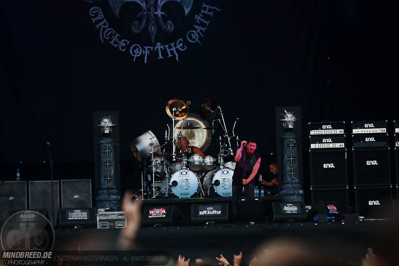 Klassiker wie „The fate of Norns“ und „The guardians of Asgar“ dankten das Publikum mit lautem Mitgröhlen. Das Zitat des Tages kam auch vom Amon Amarth Frontman: „Gebt noch mal alles in diesem Song und wenn ihr den Text nicht könnt, egal, es ist Death Metal. Niemand wird den Unterschied merken!„