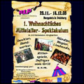 Das Event-Schloss Pulp, die Stadt Duisburg und COOLIBRI präsentieren vom 25.11.05 bis zum 18.12.05 das 1. Weihnachtliche Mittelalter-Spektakulum in zwei bis drei beheizten Großzelten auf dem Burgplatz in Duisburg.