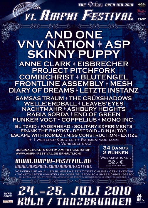 Flyer Amphi Festival 2010Für das Amphi Festival 2010 ist der offizielle Campingplatz im Kölner Jugendpark ausgebucht, obwohl im Vergleich zum Vorjahr die Kapazitäten verdoppelt wurden.