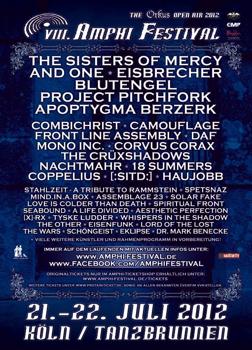 Tickets zum Amphi Festival 2012 erhaltet ihr sowohl im offiziellen Ticketshop als auch bei Eventim.de und allen bekannten VVK-Stellen.