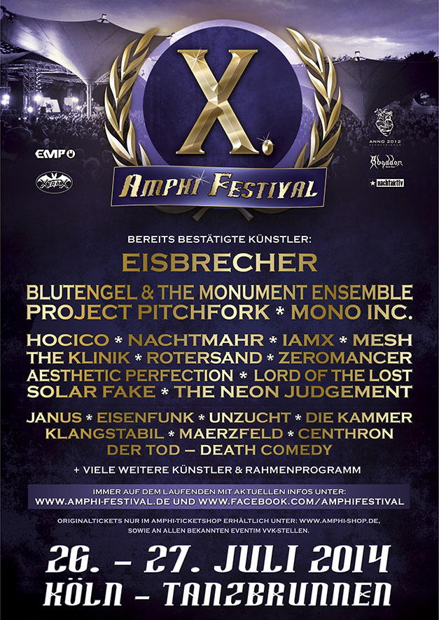 Das Amphi Festival findet in 2014 zum zehnten Mal statt, und lädt mit einem hochkarätigen Lineup zum Tanzbrunnen nach Köln.