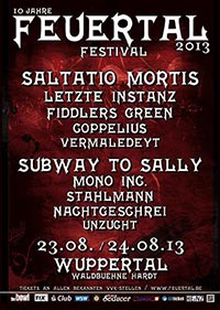 Das Feuertal Festival 2013 findet traditionell auf dem Gelände der Waldbühne Hardt statt. Während im Infield die Bands dem Publikum einheizen, findet auf den Flächen vor der Bühne wie gewohnt ein Mittelaltermarkt statt.