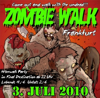 Treffpunkt für alle Untoten, oder die, die es noch werden wollen, ist zwischen 18 und 19 Uhr vor dem Haupteingang des Frankfurter Hauptbahnhofs. Die Route führt, wie immer, vom Hauptbahnhof in die Innenstadt und endet an der Alten Oper. Ab 22 Uhr ist eine After-Party im Final Destination geplant, zu der Zombies übrigens ermäßigten Eintritt erhalten.