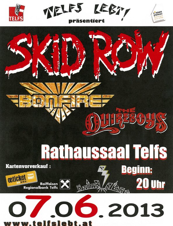 Supported werden Skid Row von Bonfire und den Quireboys, die bereits im Juni 2008 beim ersten „Telfs lebt!“ mit von der Partie waren.