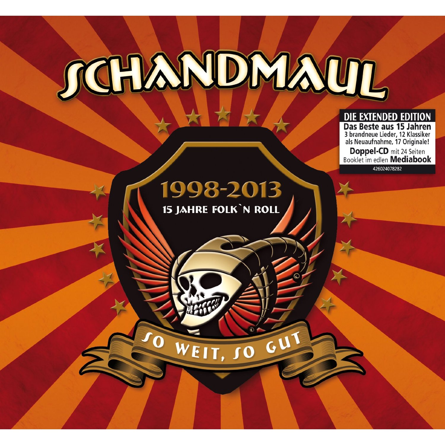 Zum besagten Ausblick in die Zukunft trägt der Song „Herz aus Gold“. Ein Stück, das man sich anhören kann, jedoch völlig ohne den typischen Schandmaul-Höhepunkt, als schmückendes Beiwerk aber absolut in Ordnung. Ein ganz anders Kaliber ist dagegen „Teufelsweib“. Von den Fans oft gefordert, ist auch dieser Beitrag neu aufgenommen worden und begeistert wieder neu. Dieser Song rockt einfach. Ein toller Text, ein Ohrwurm-Refrain und Thomas‘ Stimme zündet ab der ersten Sekunde. Besser geht es nun wirklich nicht. Ebenfalls ein neuer Song ist „Orientexpress“. Arabische Klänge und ein gewisses Urlaubsflair vermittelt dieses Instrumental sehr treffend. „Die Goldene Kette“ ist ein zugleich tragischer, wie auch beschwingter Song. Ebenfalls ziemlich alt, klingt die Sage um den kämpferischen König, der den Liebsten seiner Tochter im Kampf ersticht, frisch und voller Kraft. Ein Song, der in dieser Machart wirklich ein Highlight ist. Auf dem Akustik Album „Kunststück“ wurde damals der Song „Der Clown“ veröffentlicht und entwickelte sich schnell zu einem Liebling der Band und der Fans. Anlass genug, um diese Komposition endlich auch auf eine reguläre CD zu pressen. Eine der schönsten Balladen aus dem Hause Schandmaul. Feierwütig geht es direkt im Anschluss mit „Vogelfrei“ weiter. Ein absoluter Evergreen der Münchener Band. Ebenfalls neu aufgenommen und die Frischzellen-Kur hat sich gelohnt. Das „Trinklied“ darf natürlich auf dieser Best-of CD nicht fehlen. Da wird die Sehnsucht nach langen Nächten und gemütlichen Beisammensein geweckt. Die perfekte Einstimmung für das Jubiläums Open Air der Schandmäuler. Eine der Hymnen der Band ist ohne Frage die „Walpurgisnacht“. Live ein absolutes Highlight und in der neuen Version auch als CD Version absolut empfehlenswert. „Der letzte Tanz“ ist ein Song, den nicht viele auf ihrer Rechnung für dieses Best-of hatten. Völlig zu Unrecht zeigt sich nun. Dieses Machwerk kann locker mit den allseits bekannten Stücken locker mithalten, ein absoluter Live-Garant. Mit den zwei Balladen „Willst du“ und dem epischen „Dein Anblick“ geht diese CD zu Ende. Grade letzter Song hat bereits viele schwarze Seelen in den sicheren Hafen der Ehe geführt und sorgt bei den Live-Konzerten regelmäßig für Gänsehaut.