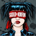 Glänzende, schwarze Zöpfe, blasse Haut, feurig roter Lippenstift der auf eine lässig im Mundwinkel hängende Zigarette abfärbt und dazu eine Augenbinde mit der Aufschrift „SKOLD VS KMFDM“ – so präsentiert sich das vor einer grauen Wand stehende Comic-Covergirl des gemeinsamen Albums von Tim Skold und Sascha Konietzko.